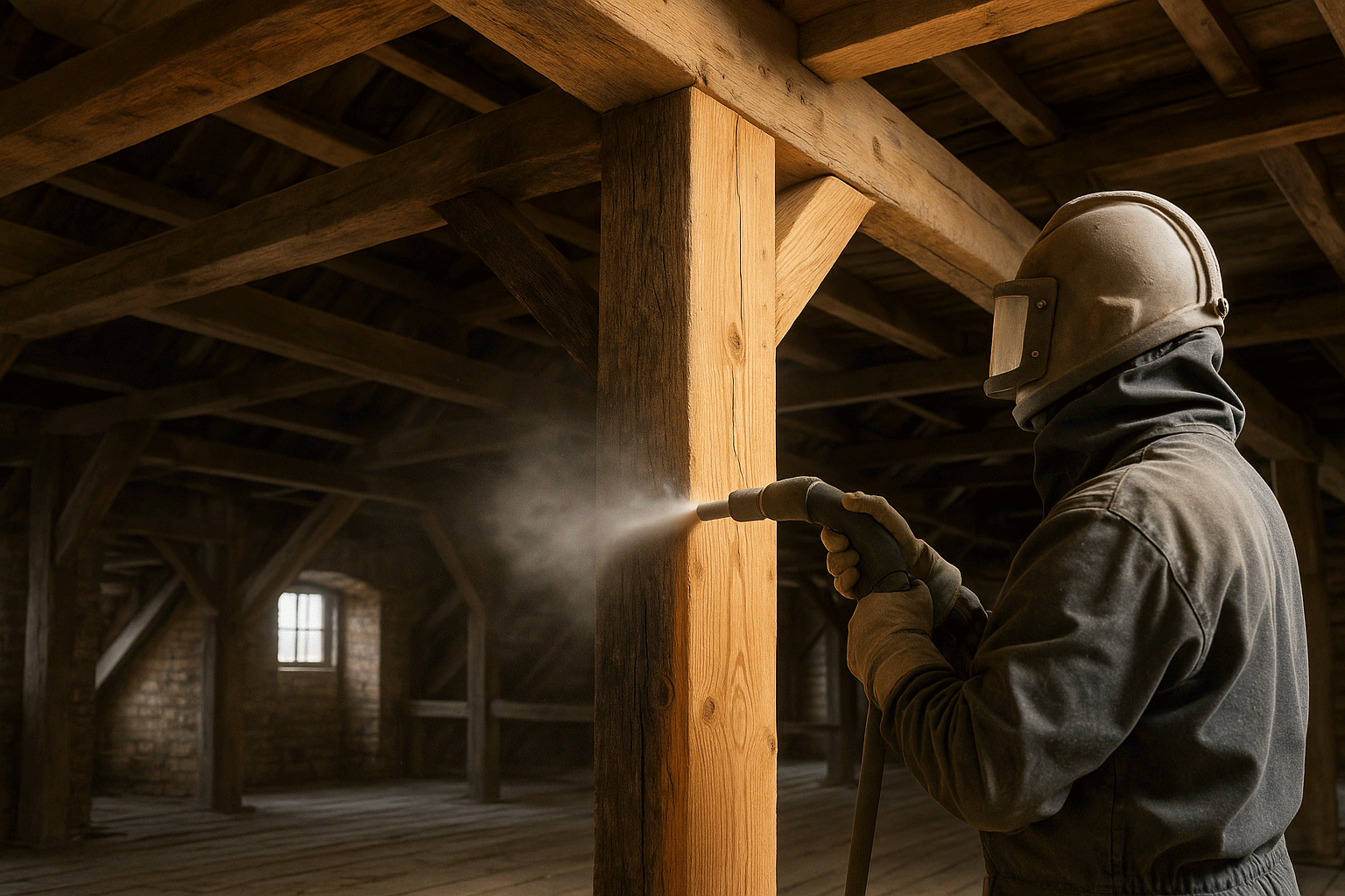 A fa különösen kényes felület: ha csak lecsiszoljuk, egyenetlen lesz, ha túl erős a mosás, megsérülhet a rost. A vizes homokszórás finom beállítással úgy távolítja el a régi festék- vagy lazúrréteget, hogy a fa szerkezete megmarad.